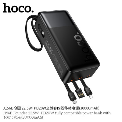 The Hoco J156B 30000mAh Fast Charging Power Bank is designed for users who need a reliable and powerful backup power solution for their devices. With its massive 30000mAh capacity, it can recharge your smartphone multiple times, making it ideal for traveling, long commutes, and outdoor activities.