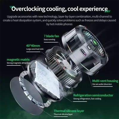 Its sleek design features a cold-forged aluminum heat sink that increases the heat dissipation area by 27%, effectively reducing your phone's temperature by an additional 5°C. The customizable RGB lighting adds a dynamic aesthetic to your gaming setup, while the detachable magnetic cover allows for easy maintenance by enabling quick cleaning of internal dust.